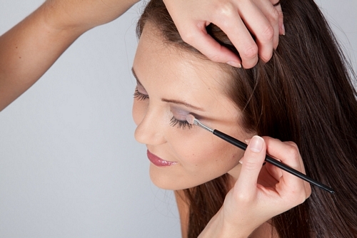 Hier werden gerade Jessica's Augen mit einem weiss-violett schimmender Lidschatten betont - Foto by Thomas Glauser PhotographyDie 21-jährige Tessinerin Jessica hat die Jury durch ihre positive Ausstrahlung überzeugt. Sie wurde einstimmig zum SCROGGIN Cover-Face 2011 gewählt. Das professionelle Fotoshooting fand in Wil bei Thomas Glauser im Studio statt.